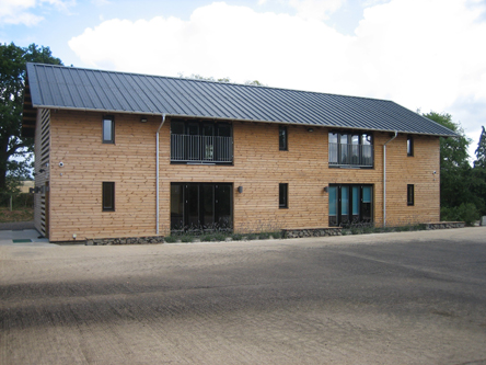 A new estate office replacing an old farm grain store in a  rural location. Low cost timber frame building with excellent insulation and  biomass boiler. Local vernacular materials chosen and detailed in a crafted yet  contemporary manner.   |