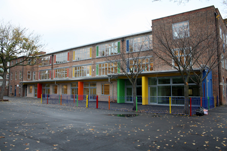 The coloured louvered window panels give each class its own identity as well as giving much improved natural ventilation. At the rear of the school is a new swimming pool and new three storey class room block. The project is due for completion in 2011; the school is one of London’s first Academy Primary School